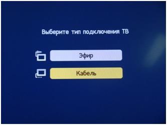 4) Автопоиск"-"Начать автонастройку"-"ОК"-"Тип подключения кабельное"
